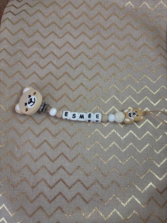 Attache tétine ourson BEIGE